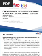 Orients the Homeroom Advisers on the implementation of the Homeroom Guidance