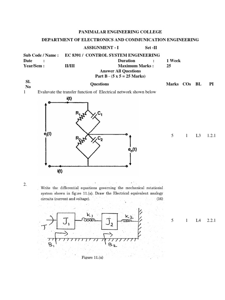 Sub Code / Name : EC 8391 / CONTROL SYSTEM ENGINEERING
