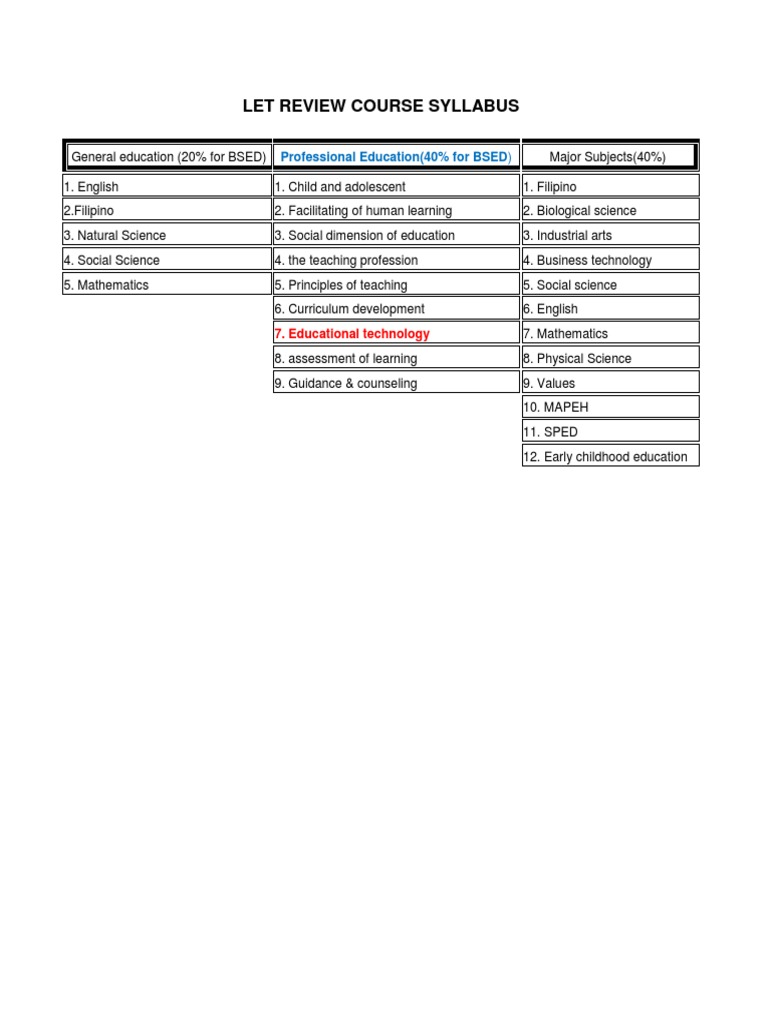 LET REVIEW COURSE SYLLABUS