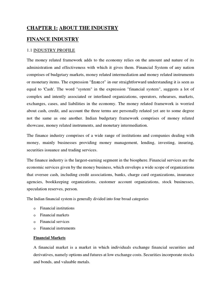The finance industry comprises of a wide range of institutions and companies dealing with