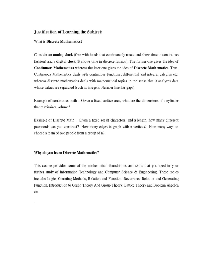 include: Logic, Counting Methods, Relation and Function, Recurrence Relation and Generating