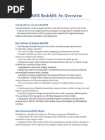 • Service Highlights and Pricing – The product detail page provides the Amazon Redshift value proposition,
