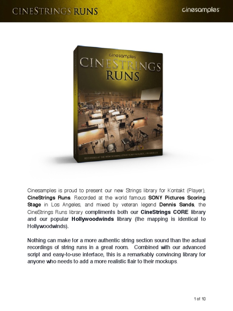 • CineStrings Runs is compatible with all major DAWs and with other music notation