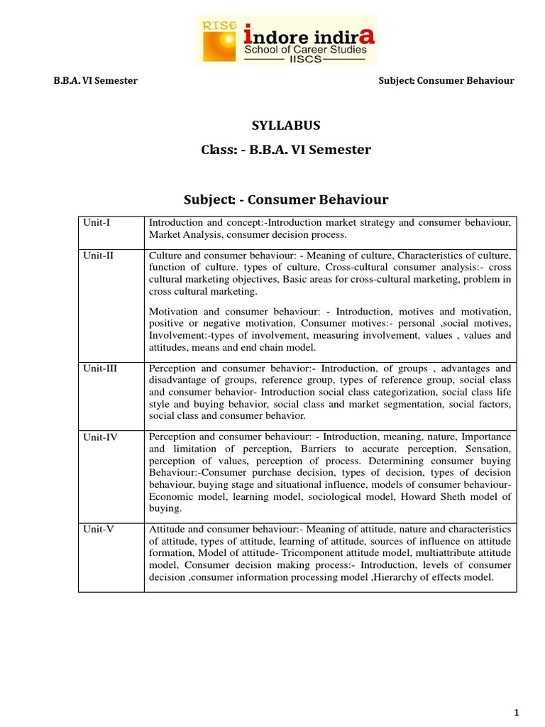 B.B.A. VI Semester Subject: Consumer Behaviour