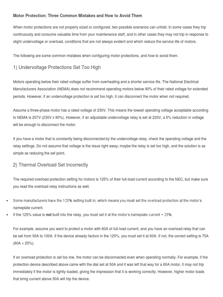The following are some common mistakes when configuring motor protections, and how to avoid them.