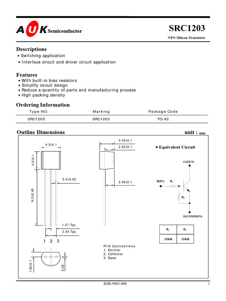 Transition Frequency fT VO=10V, IO=5mA - 200 - MHz