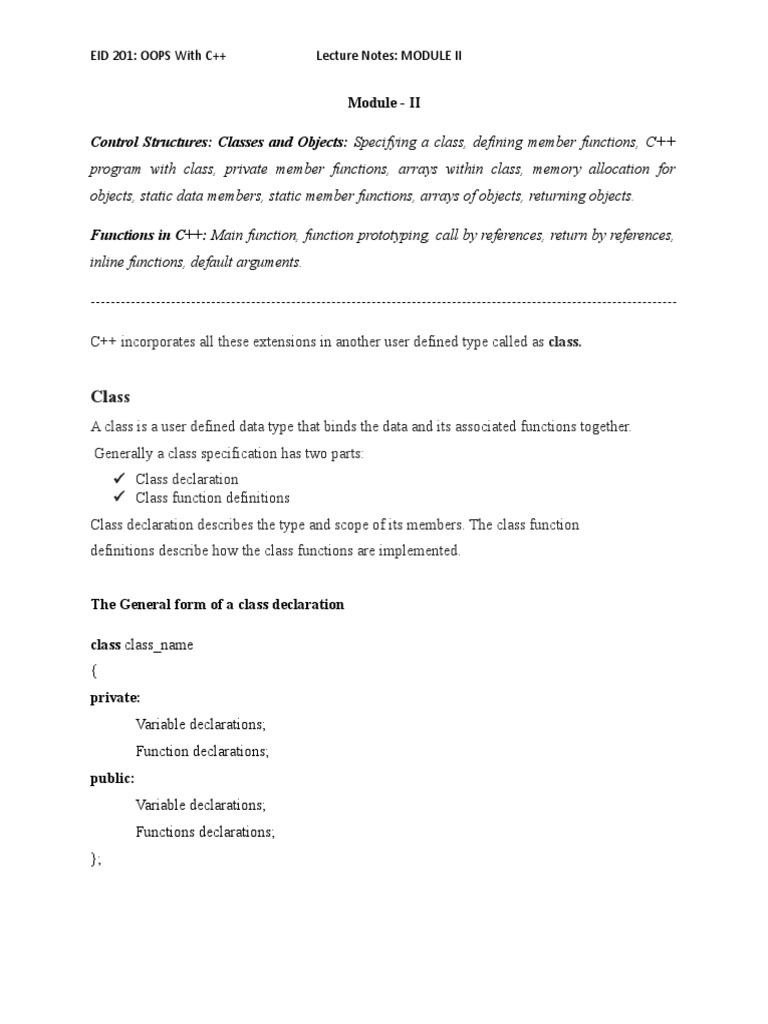 EID 201: OOPS With C++ Lecture Notes: MODULE II