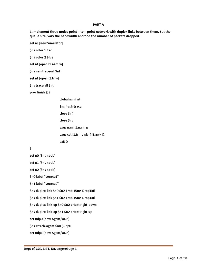 1.Implement three nodes point – to – point network with duplex links between them. Set the