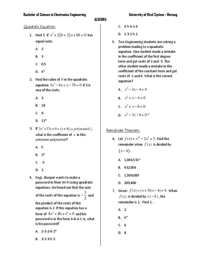 8. If today is Monday, and 1234 days Laws of Exponents, Radicals and Logarithm: