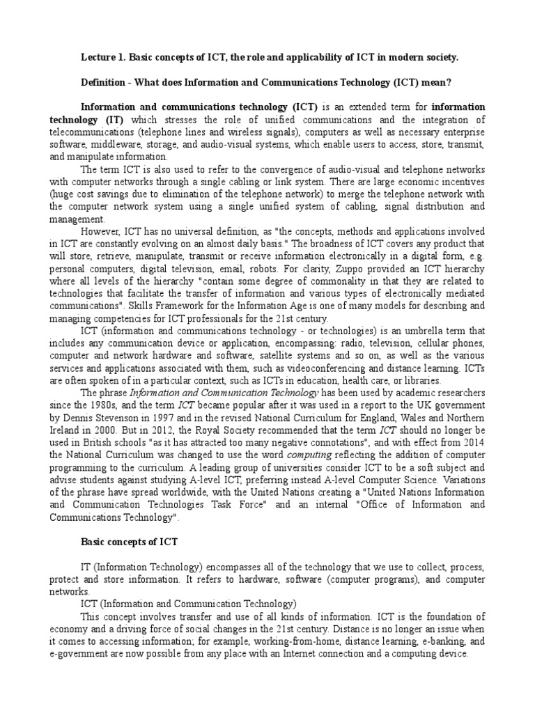 This concept involves transfer and use of all kinds of information. ICT is the foundation of