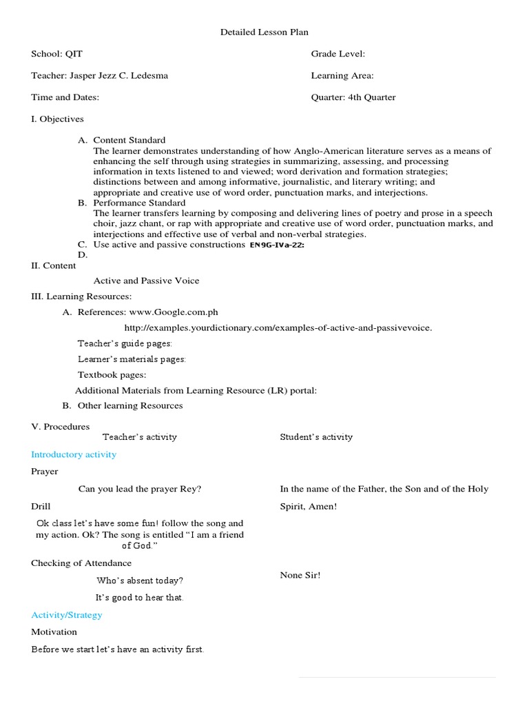 Teacher: Jasper Jezz C. Ledesma Learning Area: