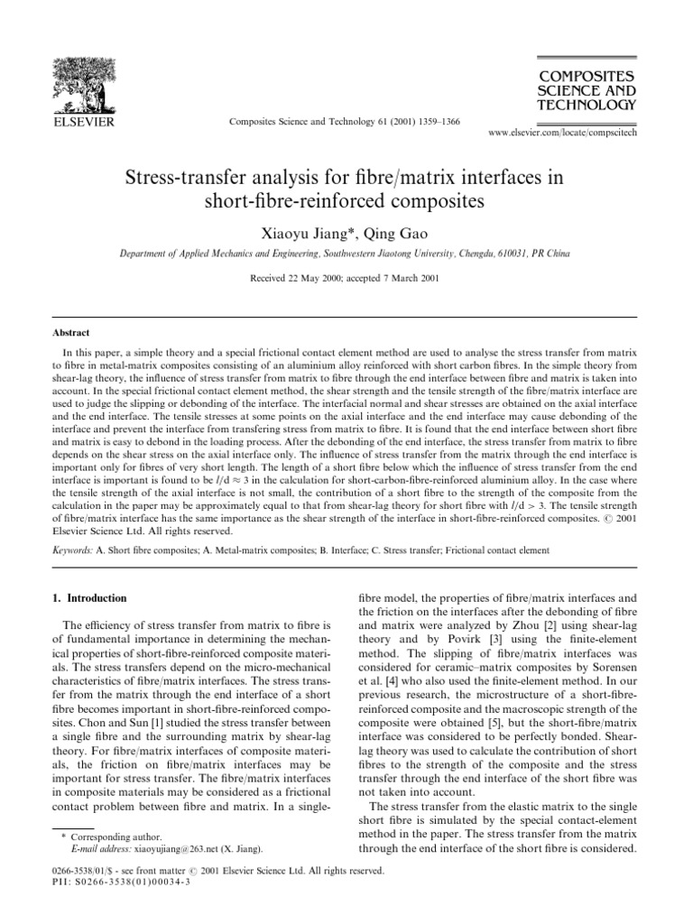 Keywords: A. Short fibre composites; A. Metal-matrix composites; B. Interface; C. Stress transfer; Frictional contact element