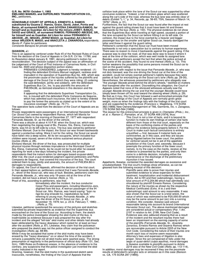 after the accident (Rollo, p. 87). Likewise, they claim that the policeman Zanarosa, Ernesto Ramos and Goyena Ramos) which
