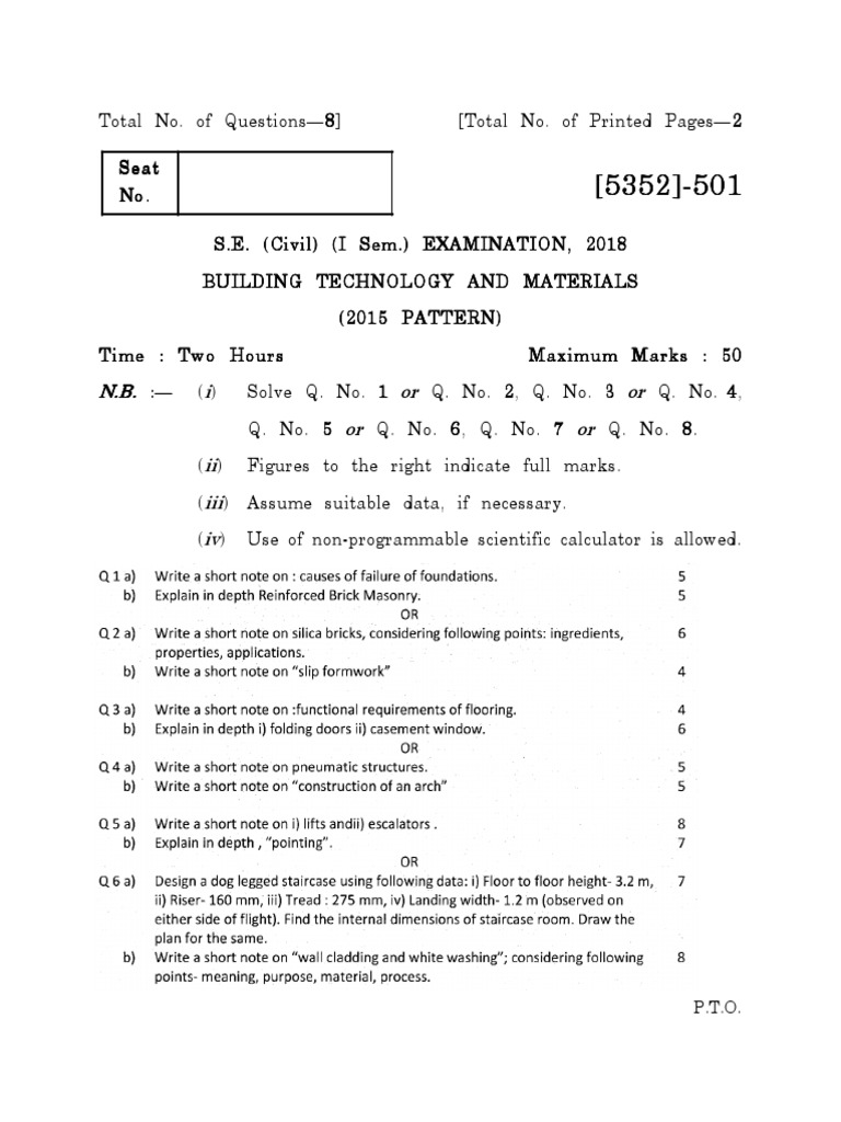 S.E. (Civil) (I Sem.) EXAMINATION, 2018