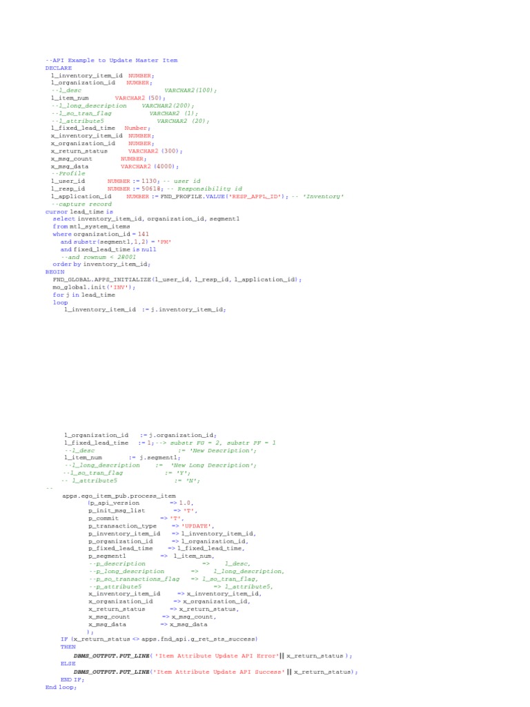 DBMS_OUTPUT.PUT_LINE('Item Attribute Update API Success' || x_return_status);