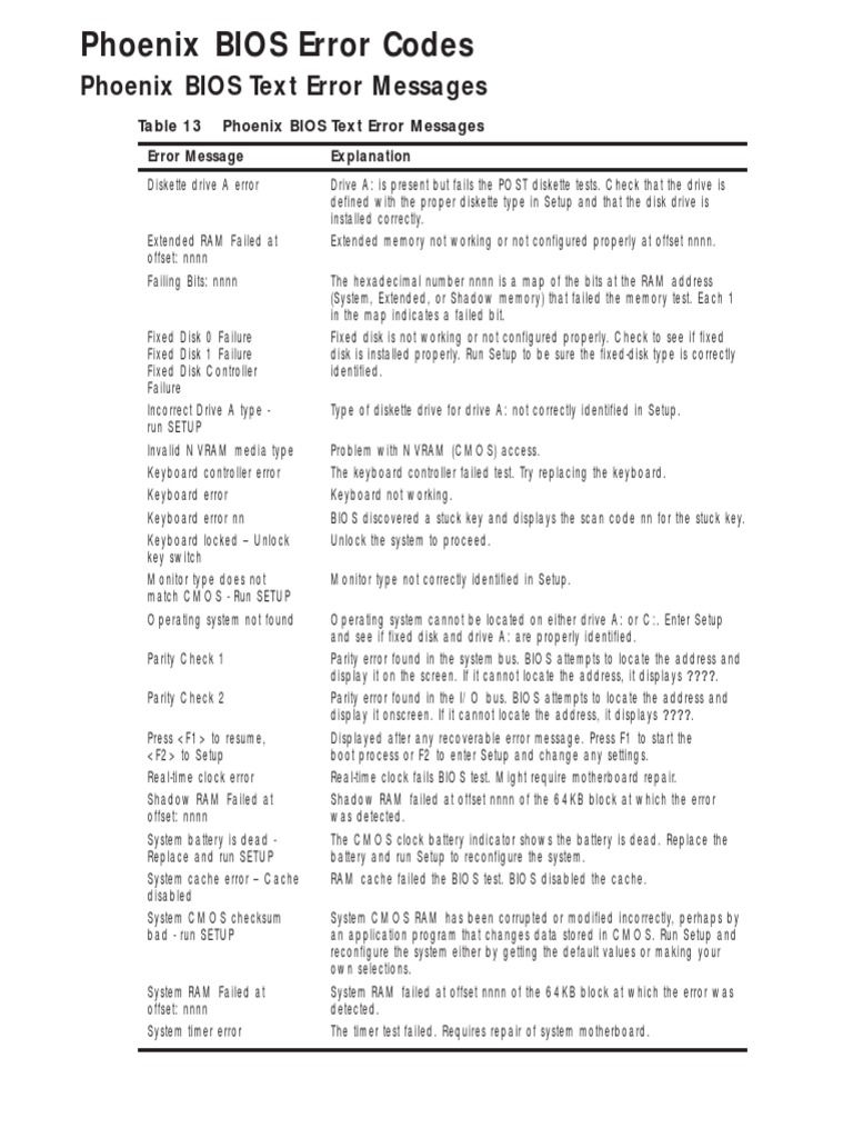 Diskette drive A error Drive A: is present but fails the POST diskette tests. Check that the drive is