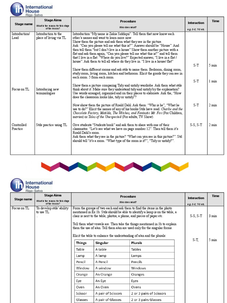 of the lesson? e.g. S-S; T-S etc.
