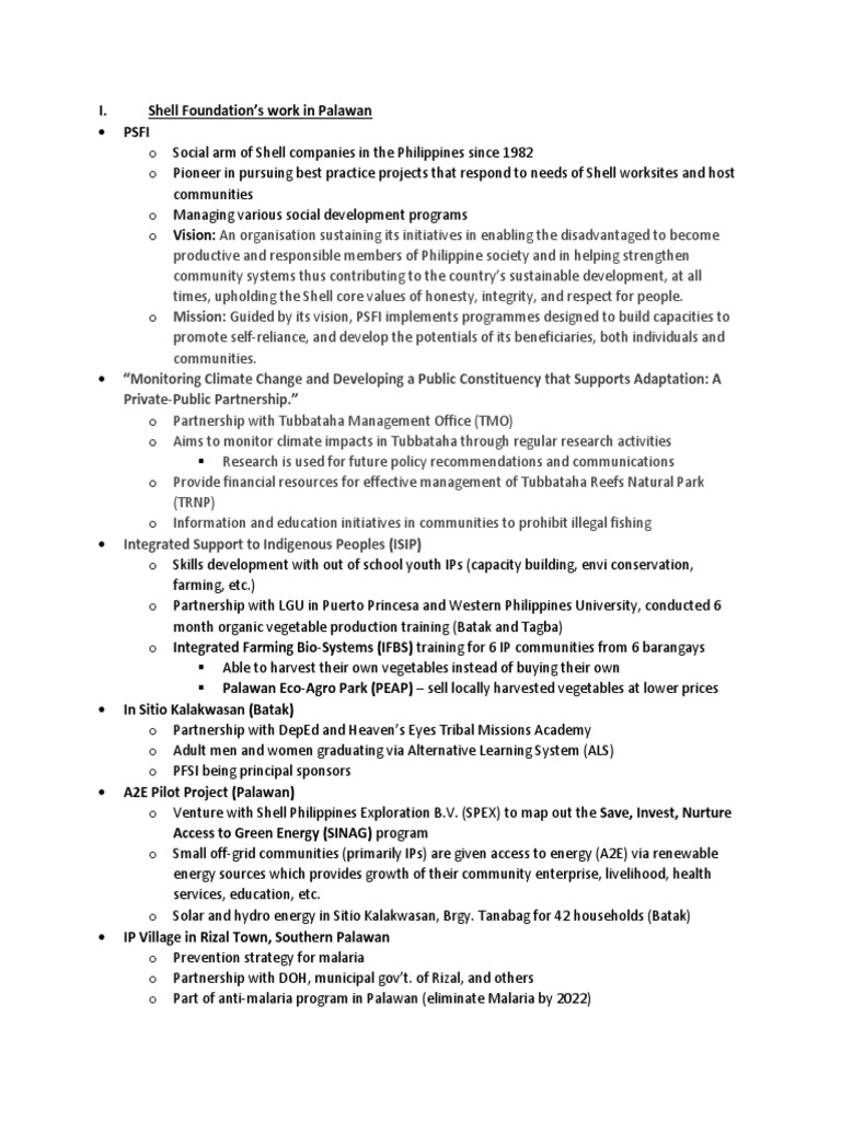 o Venture with Shell Philippines Exploration B.V. (SPEX) to map out the Save, Invest, Nurture