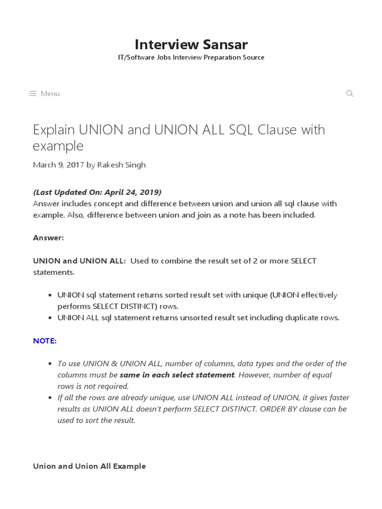 results as UNION ALL doesn’t perform SELECT DISTINCT. ORDER BY clause can be