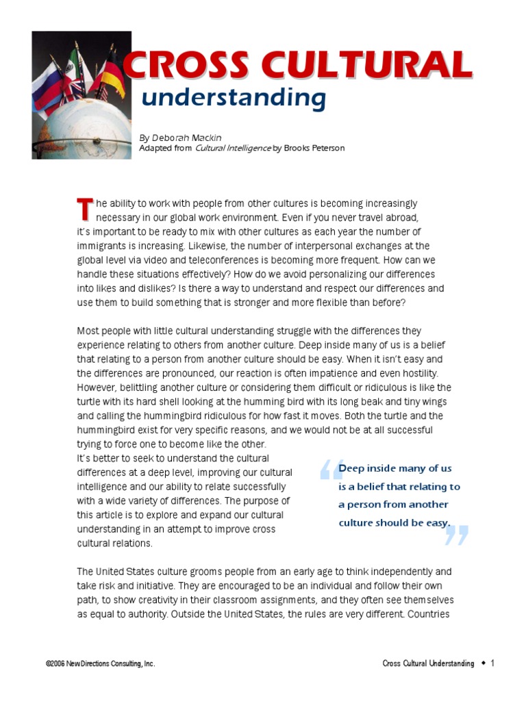 ©2006 New Directions Consulting, Inc. Cross Cultural Understanding 1