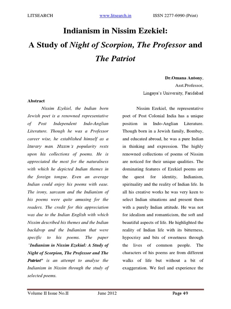 “Indianism in Nissim Ezekial: A Study of the lives of common people. The