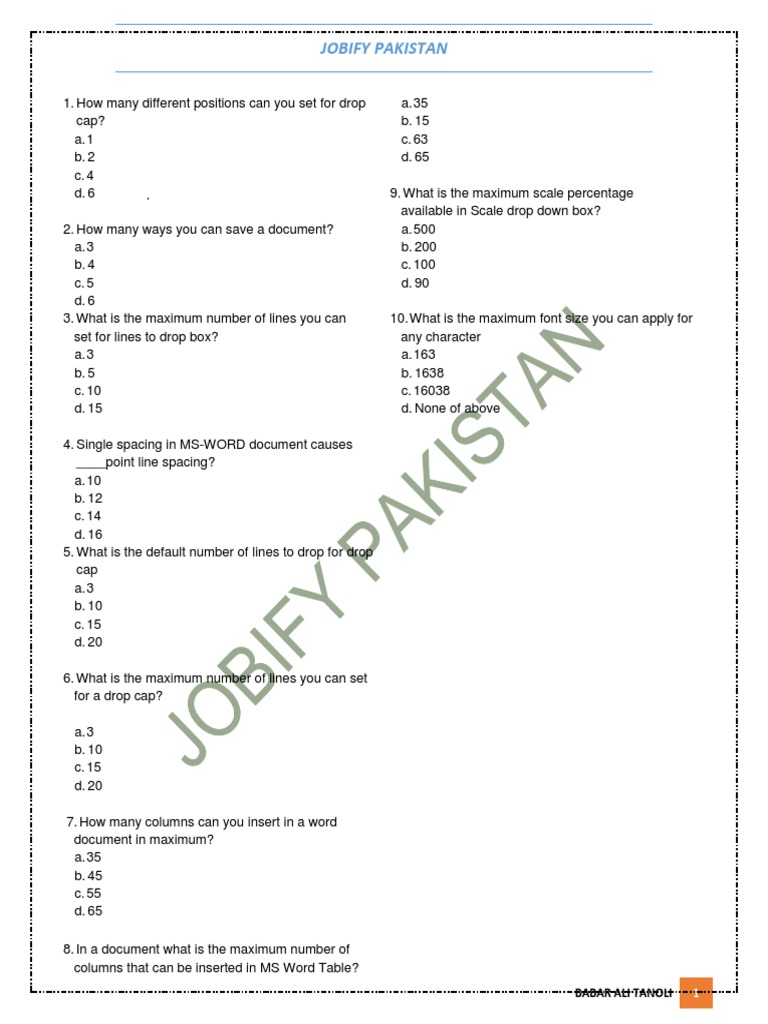 Solved Computer MCQs For UDC/LDC MS OFFICE