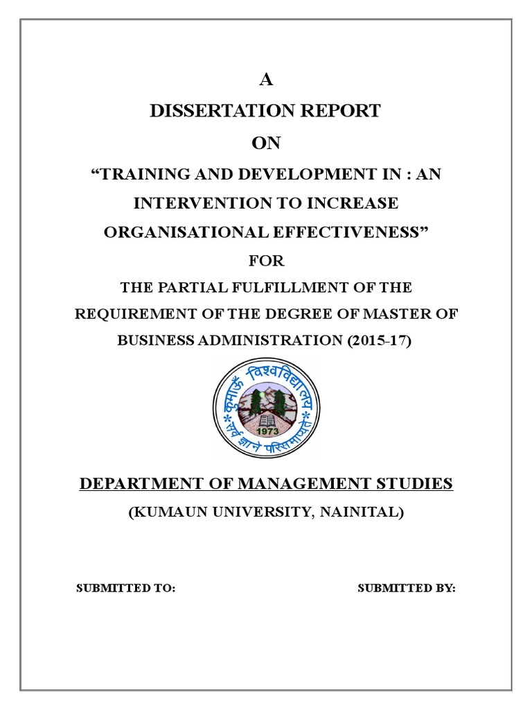 the DEPARTMENT OF MANAGEMENT STUDIES in partial fulfillment of the