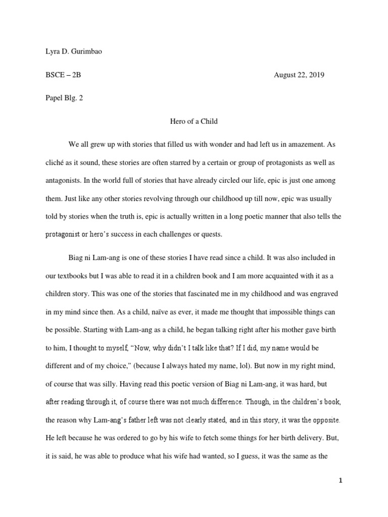 be possible. Starting with Lam-ang as a child, he began talking right after his mother gave birth