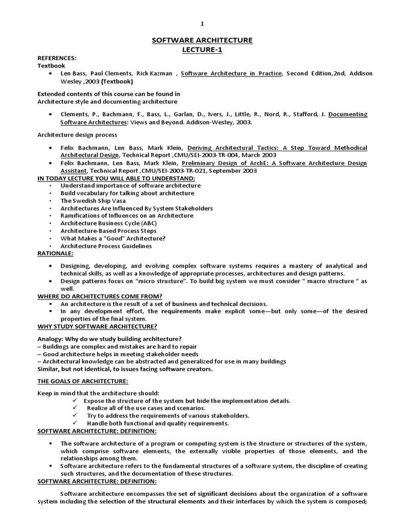 ◦ Understand importance of software architecture