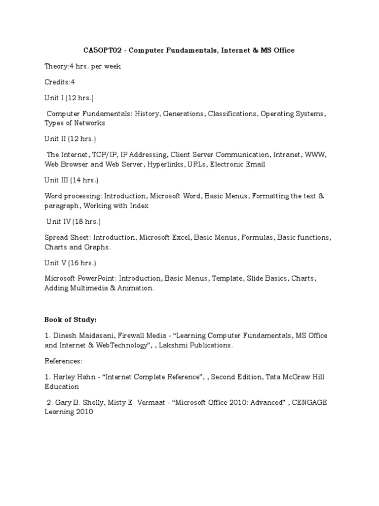 CA5OPT02 - Computer Fundamentals, Internet & MS Office