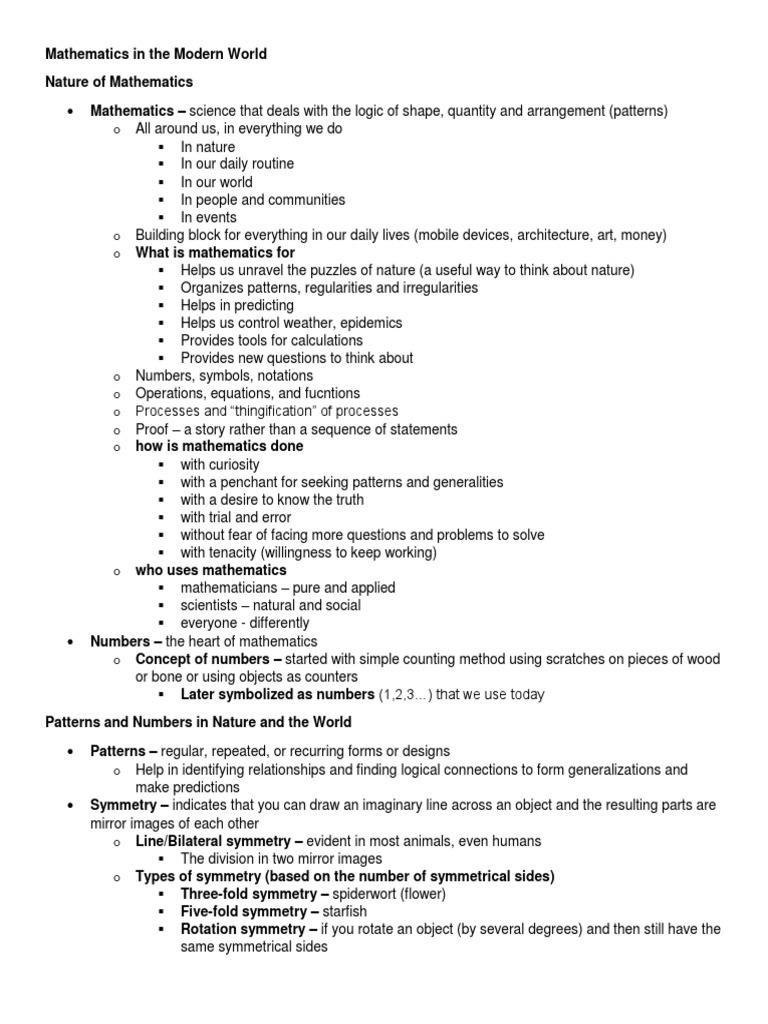 Mathematics – science that deals with the logic of shape, quantity and arrangement (patterns)
