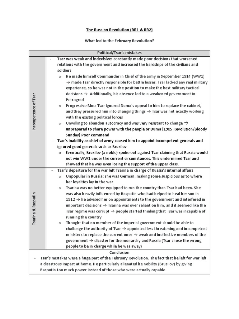 o Conclusion: The defeats in WW1 made the army lose faith in Tsar, who always relied on