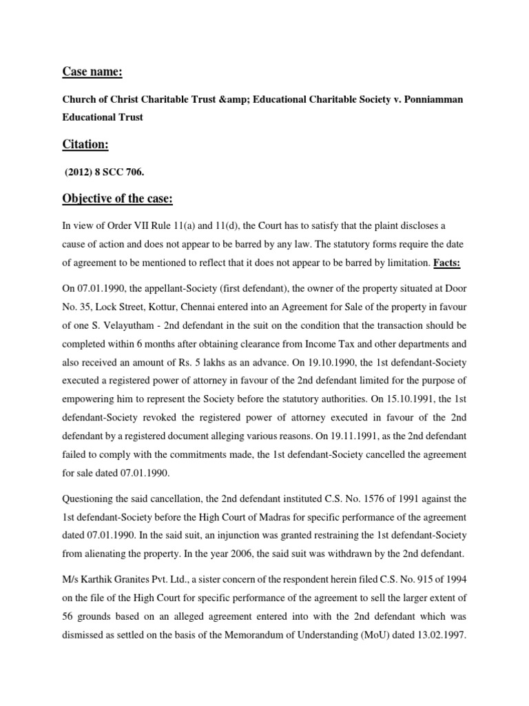 Church of Christ Charitable Trust & Educational Charitable Society v. Ponniamman
