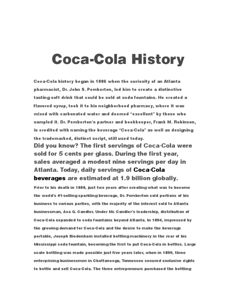 Coca-Cola history began in 1886 when the curiosity of an Atlanta