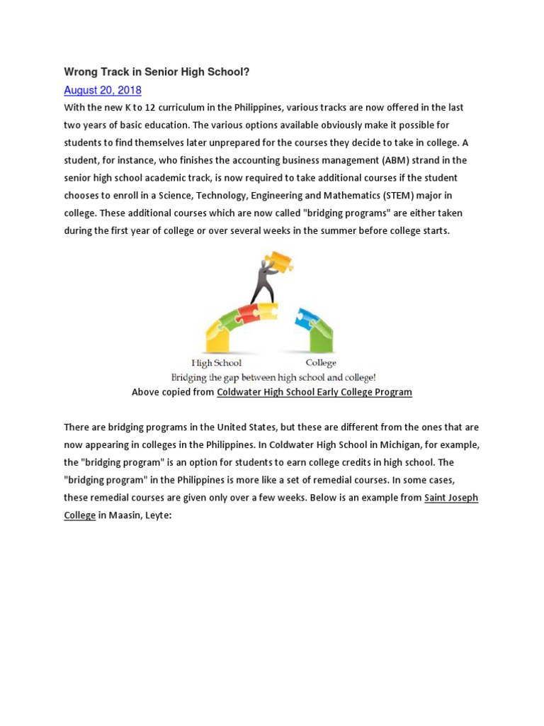 "bridging program" that is meant for remedial (colleges in the Philippines). As a study in