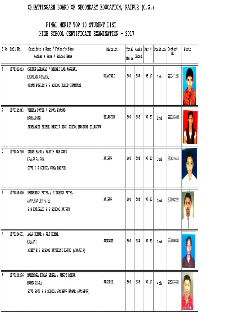 URMILA PATEL BILASPUR 600 586 97.67 2nd 9993283808