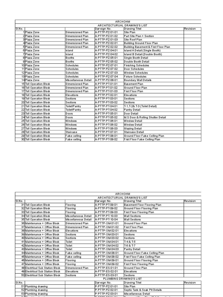 S.NO. Drawing No. Drawing Title Scale @A1 Assigned Assigned