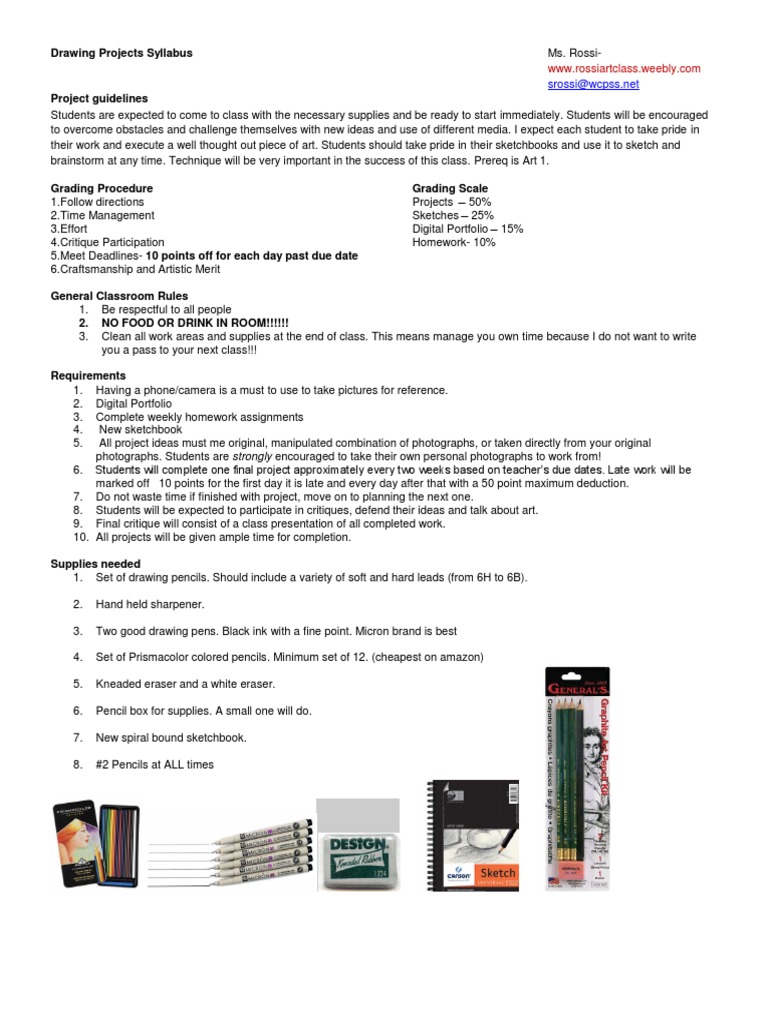Students are expected to come to class with the necessary supplies and be ready to start immediately. Students will be encouraged