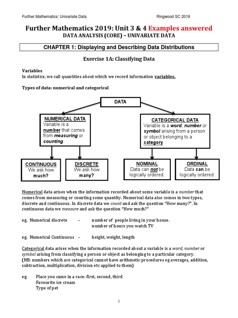 Further Mathematics 2019: Unit 3 & 4: Examples Answered