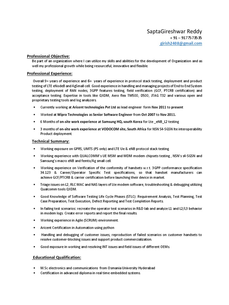 Overall 9+ years of experience and 6+ years of experience in protocol stack testing, deployment and product