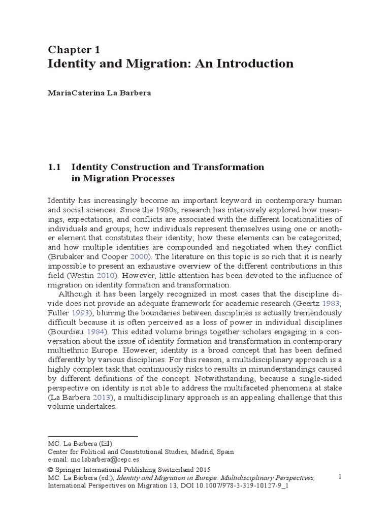 MC. La Barbera (ed.), Identity and Migration in Europe: Multidisciplinary Perspectives, 1