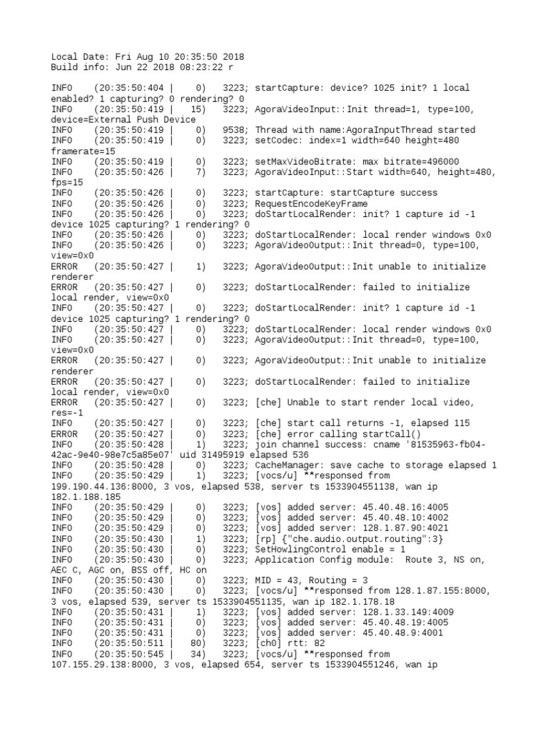 INFO (20:35:50:427 | 0) 3223; doStartLocalRender: init? 1 capture id -1