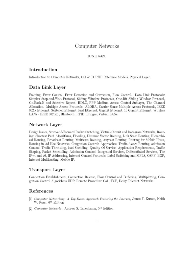 [2] Computer Networks , Andrew S. Tanenbaum, 5th Edition