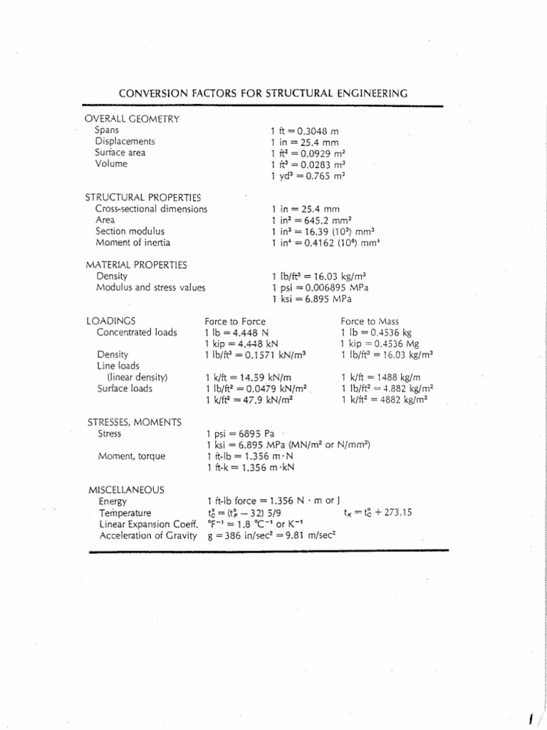 1 kip = 4.448 kN 1 kip = 0.4536 Mg
