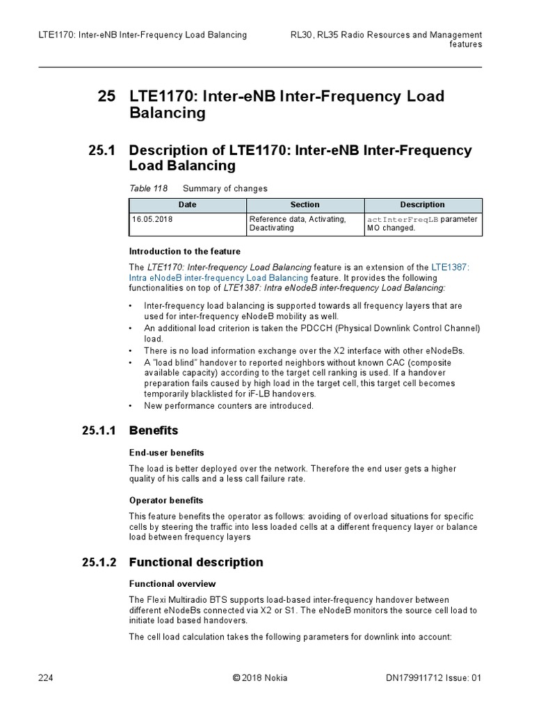 RL30, RL35 Radio Resources and Management LTE1170: Inter-eNB Inter-Frequency Load Balancing