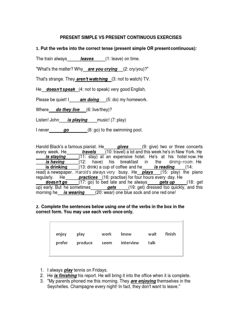 1. Put the verbs into the correct tense (present simple OR present continuous):