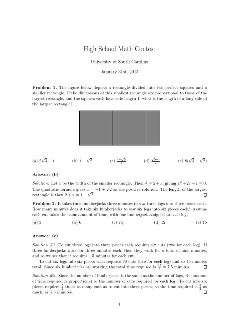 Solution: Let x be the width of the smaller rectangle. Then x1 = 2 + x, giving x2 + 2x − 1 = 0.
