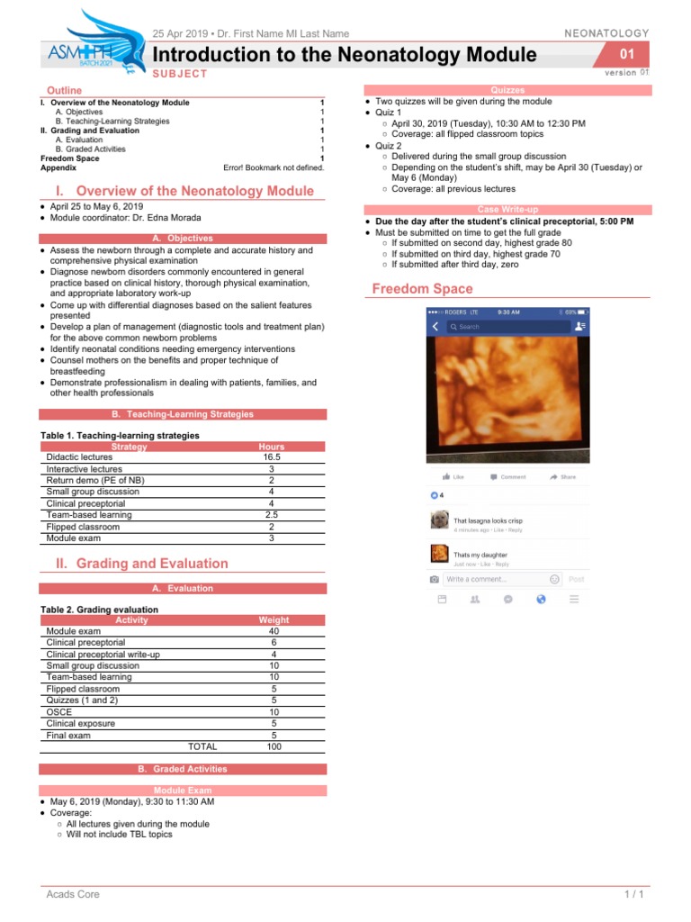 I. Overview of the Neonatology Module 1 • Two quizzes will be given during the module