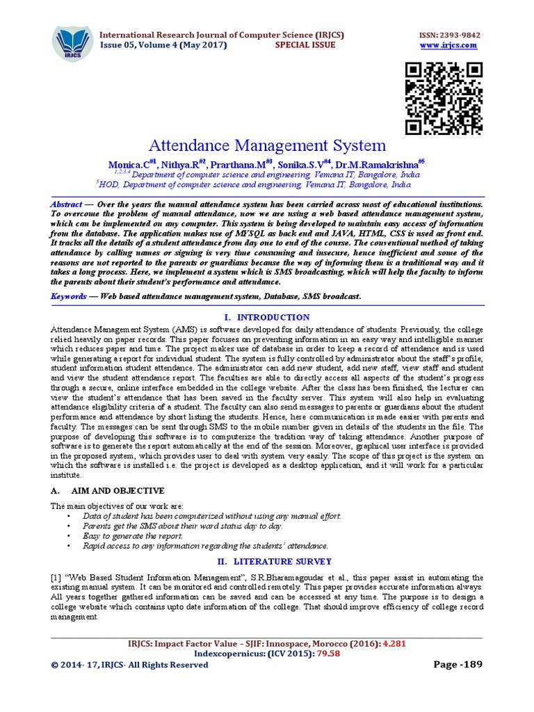 Keywords — Web based attendance management system, Database, SMS broadcast.