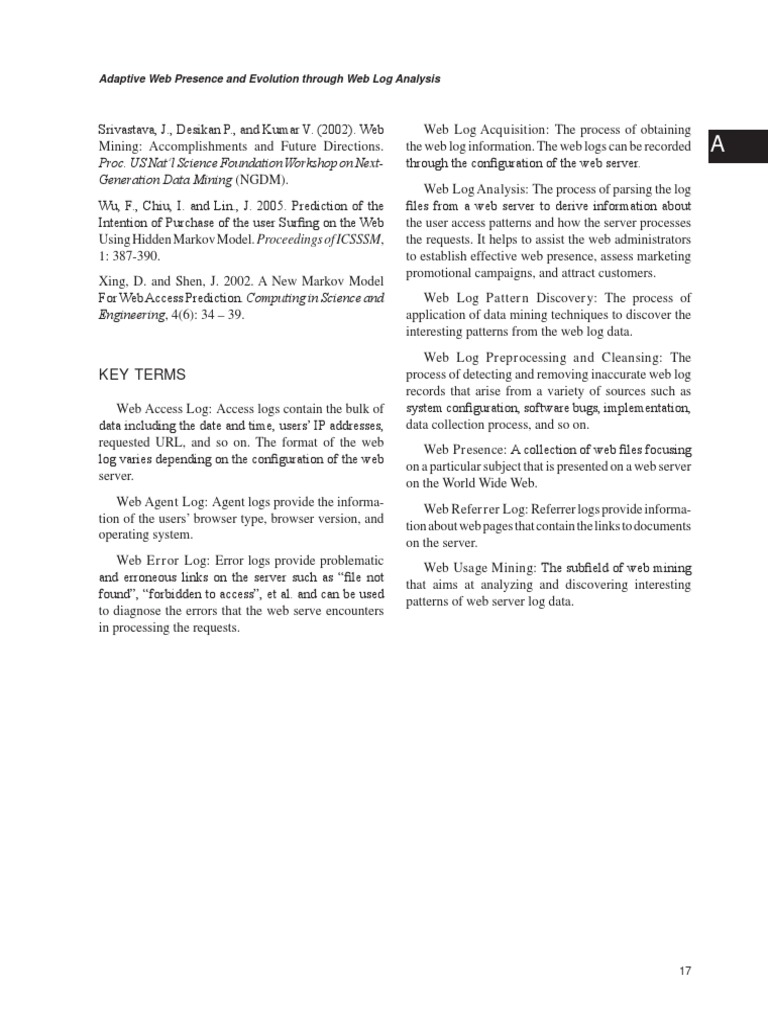 Srivastava, J., Desikan P., and Kumar V. (2002). Web Web Log Acquisition: The process of obtaining